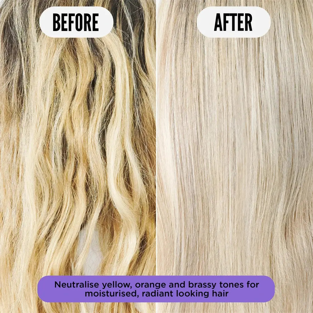 - Farbkorrektur: Neutralisiert messingfarbene, gelbe und orange Töne und entfernt sie aus blondem, silbernem und grauem Haar.